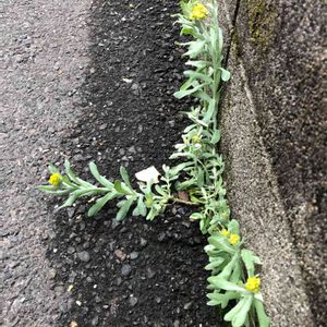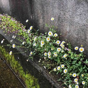 側溝と壁の隙間ちゃん 零れ種かな? ところでペラペラヨメナって何だよ… キク科はちょっと自信ないんで間違ってたら教えてください