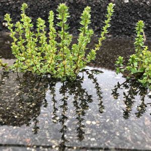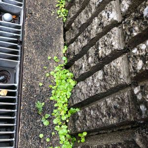 ブロックの隙間ちゃん 雨上がりの植物は心なしか生き生きしていて緑が綺麗 チドメグサかな? サッと撮って来たのでよくわかんない