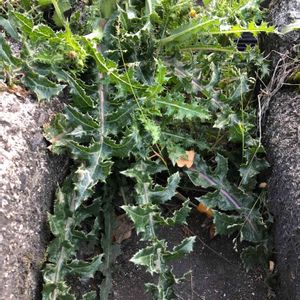 フェンスの向こう側のコンクリの隙間にデーンデーンともりもり栄えていました アザミは単品で生えているのをよく見かけます タネを飛ばす繁殖方法が功を奏しているんですかね