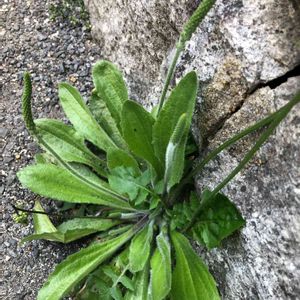 踏まれても負けない草の代名詞オオバコ けむくじゃらなのでツボミオオバコではないかと 案外うちの近所では見かけない 山手の住宅地道端にて