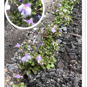 アスファルトの隙間のトキワハゼ 実はよく似てると言われるムラサキゴケを見たことないのですがムラサキゴケは匍匐性 花の形が微妙に違う いつか見かけたら是非比較してみたい