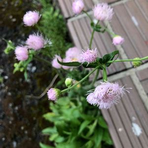 夕方の隙間ちゃん ハルジオンは暗くなり花も閉じかけで糸のような花びらが風に吹かれてもしゃもしゃでした