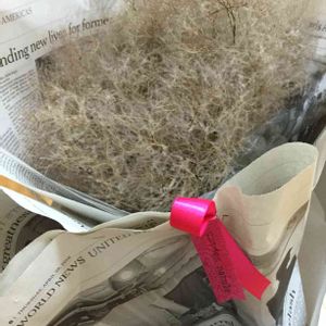 大切なお友達に🎁😊💖🐾 今度、お店、オープンする予定のお友達🌟ディスプレーで飾ってくれたらと思い😊💓 生花ではないが😅長く飾れるかなぁ✨✨😊 またまた、スモークツリーのドライ、ラッピングしてますが、 水色の鳥がスモークツリーの中にとまってます🕊✨ スモークツリーのドライと、水色の鳥がいい色合いです💖 ラッピングの英新聞が、なかなか素敵😊💖 それと、私のと同じく、先日の過去picでの、スモークツリーのドライのまん丸😊💓💓がいくつか入ってるよ💖 喜んでくれるといいなぁ💖
