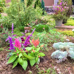 地に寄せ植えちゃった😝 オレンジとパープルはマストカラーでしょ😈🎃 勉強しないとなのに庭いじり…