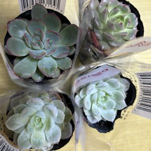 エリークイーン プラグ苗から1年でこんなに育ってくれました ピンクでぷっくり、めちゃくちゃかわいい子💕 pic4 おまけ さっきのぞいたダイソーに入荷したてのセンペルちゃんたちが🪴