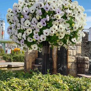 2023.6.7 晴れ☀️ [ビオラ] ハンギングバスケットのビオラが、まんまるで 可愛い~👍️🎵 駅前の噴水の周りがいつもお花がキレイです😁