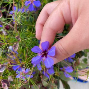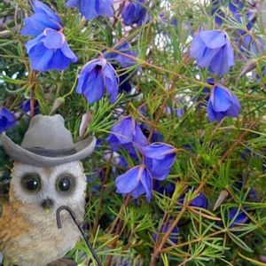 下を向いた青い花が彗星に見えることから プラティセカ ブルーコメットと名前がついたらしく お店のワサワサと咲いてる鉢を見てわずかに 残ってた乙女心にスイッチが入りました^^ “流れ星の花だね 星に願いを”by地の精 ウー なんてカンガルー🦘の絵と共に タグに書かれていて(。´艸`。) 地の精って何・・と思いながら もうウフフのウーとなり手に取りました💜 ちょっと難しい子みたいだけど夏越ししたいな