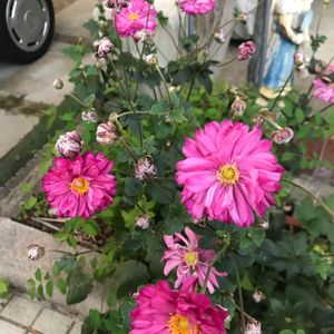 8分咲きくらいが好き💕 八重の秋明菊。 毎年、少し違う場所で 咲いている。 秋を感じる花のひとつ😊