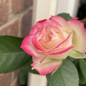 うっかりしてたら、またやってしまいました😅 小さい薔薇の挿木苗を移動しようしたら動かない。まさかと思い手摺の外を覗いたら、ご機嫌に咲いてました❣️ 元気いっぱいのモナコ王子です。隣のグリーンアイスもご一緒に。