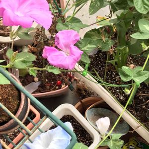 狭いベランダ… 😢 ピンクの朝顔が 頑張って また 咲いてくれましたℓσνє♡💓 エアコンの室外機、こちら側は、冷房の時は、熱くならないことを発見🧐 消防設備の点検時、植物は、この場所で育てることが、許容範囲だと確認…しました😭😨🧐 朝顔のむこうには、 ギボウシ の鉢🍃🌱 もうひとつは、リビングのなかにあります.。o○