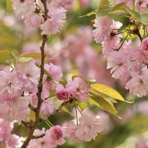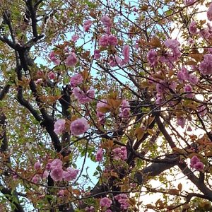 八重桜が綺麗に咲きだしました。 パチリ 花の咲いている枝が、ゴツゴツして、曲がっているので「関山(カンザン)」のようです。
