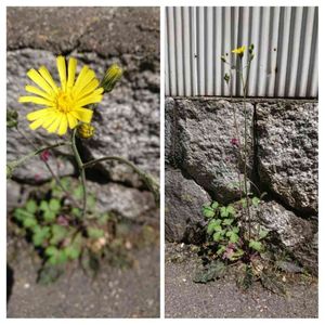 うちの表道路のアスファルトとうちの石垣の間からウズラバタンポポが勢いよく伸びてます(⌒0⌒)/~~ 70㎝近くあるのではヾ(゜0゜*)ノ? 寄り添ってオダマキも強いですねー(*^。^*)