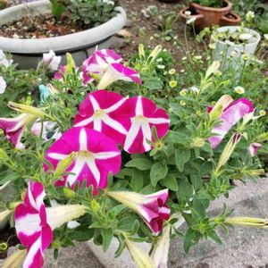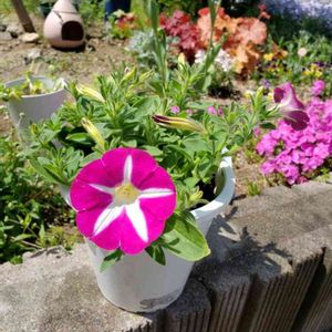 モニター当選のスーパーチュニアビスタ ローズスター 鮮やかに咲いてるよ~☀️ くっきりきれいに色が出てる✨✨ 大きい鉢に植え替えてあげたいな~😊♡