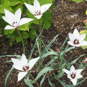 チューリップの原種です。 白いものは花びらの外側が赤でした。
