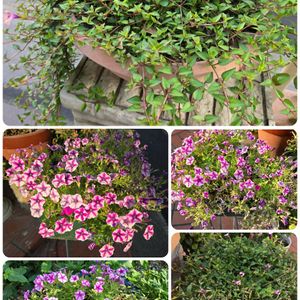 ペチュニア ①②2回目の満開この後切り戻し ①ビスタミニ 8号鉢 春は色が濃かったが白が多くなって可愛くなった🥰 ②小梅ちゃん 8号鉢 途中雨で満開前に切り戻したけど回復が早い ③あずきフラッペ 6号鉢 5月に購入した苗、花が咲きだした🌸 横に広がり易いようで鉢から枝垂れそう