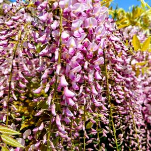 おはようございます😊 今日のお花 薄紫色のフジの花を4枚投稿します🪷 とてもいい香りがしていて 青空に映えて きれいでした😄