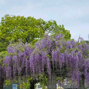 5月6日 今日のお花 🌿💜🌿💜 フジ 💜🌿💜 春に、フジは50cm以上に 垂れ下がった房に多くの花 を咲かせます♪花の色は、淡い上品な薄い紫色で、この植物の名前がその色の名前に用いられ、『藤色』です♪この植物のツルは、木や棒に巻きついて伸びます。この性質を利用して藤棚に仕立てられます。この植物は、2024年度に発行された新五千円札の裏面の図柄に採用されました。このお札の人物は、近代的な女子高等教育の貢献し津田梅子で、紫色を基調とするため、その色合いをもつフジの花が選ばれました。 ①お稽古の友達から奈良春日大社神苑・萬葉植物園のフジの写真を送ってきました。 ②③④GW始め 従姉妹が三重県津市かざはやの里のフジ棚を見てきました。 ⑤ご近所さんの藤の花の鉢植えです♪ 🏷️愛しの紫 🏷️和を感じる日本の花 🏷️癒しの薄紫