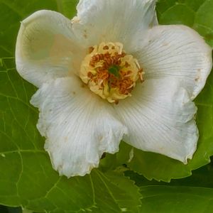 宇都宮市の大谷石採石場で、アジサイの葉っぱ🌿の上に落ちていました 何だろう⁉️ 上を見上げるとナツツバキと分かりました😉 🏷️今日のお花