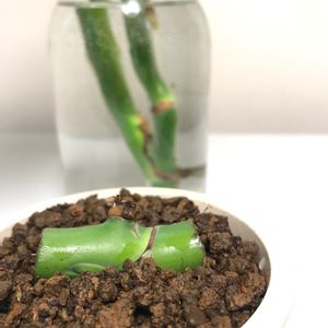 モンステラの茎伏せ さっきまで真ん中ふたつはクロスしてました 先頭きって手前が1番にひらいたけどその後動きなし ほか3つは一応2枚目の葉っぱ 6/24に投稿した時は切るのに勇気が必要で 根っこ+茎伏せひとつ+トップの3兄妹でした とても丈夫なことがわかり 徐々に兄弟が増えていまや10以上の子だくさん そんなに増やしてどーすんの (。・_・?) とか思ったり言われたり でもまだ根づいてません 根づいてないのに葉っぱが出てきて神秘すら感じる 手前から2番目は気根が伸びてるけど 枯れてしまう可能性も大いにあるある ( •́ •̀ )՞՞ ほかには茎伏せの立派な根っこ付き保険モノ&水に挿したモノ&水に浮かべた茎の実験くんなどなど そちらはまた投稿させていただきます🌱 ↓🏷モンステラの仕立て直し↓