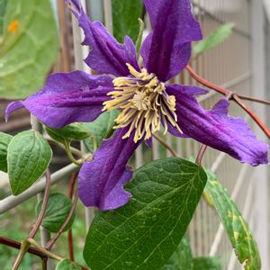 💜クレマチス サムシングブルー 毎年良く咲いてくれます🤗 ブルーと言うよりは紫ですけど🤭 上の方でばかり咲いてます。難しい性格のようです🤗