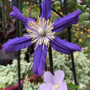 クレマチス サムシングブルー 4月に咲いて、それからずっとお休みzzz 暑い真夏になって咲き始めました💙💜 和紙のような質感の花びらが、とっても涼しげ🎐 湘南クレマチス園のクレマチスさんです⛱