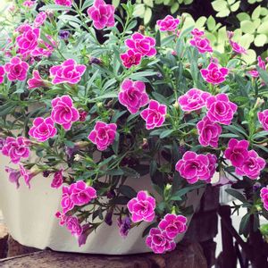 2回切り戻しをしたカリブラコアのダブルピンクリップル。白い縁取りが可愛い❤️サフィニアと比べて成長がだいぶ遅いけど梅雨時期にはこのぐらいがちょうどいいかも☺️