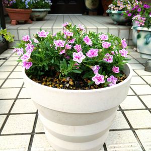 PW スーパーベル ダブルピンクリップル アンバサダーで頂いたお花を飾ってるエリア。 1枠空いてたので、☔にも強い、スーパーベルを仲間に✨ 明日は大雨☔🌀予報😨 過保護に、軒下避難かな……😅