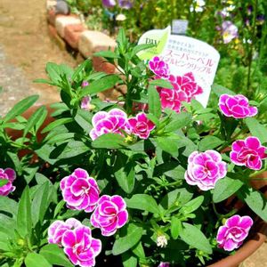 スーパーベル ピンクダブルリップル お花が増えてきました😍可愛い❤️ タゲテス ゴールドメダル は一斉に咲く感じではないけど常に咲いてます🌼 アルテルナンテラ リトルロマンスは...のんびり新しい葉が増えてきました まだしばらく寄せ植えで過ごせそう❤️