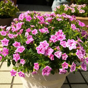2021.9.22✳︎PW*スーパーベル ダブルピンクリップル 挿し芽の鉢です。もう花のピークは超えたようですが、この鉢は冬越しにチャレンジしようと思っています😊