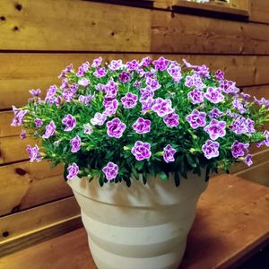 カリブラコア スーパーベル ダブルピンクリップル 暖かい部屋に取り込んで、冬越しした鉢です。何回か切り戻しながら、冬を越しました。 外に出す日が今から楽しみです。