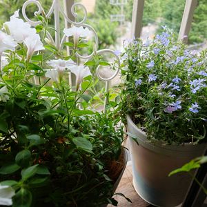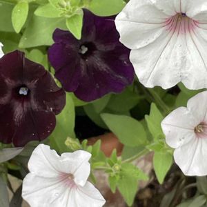 おはようございます😃 今日は32℃予報です💦 今週は晴れて暑くなるようです😓 ① スーパーチュニア・ビスタ シルバーベリー スーパーチュニア・スワローブラック 2色を合わせて白黒の寄植えを作ろうと😁 中々、モリモリになりません💦 ②ホタルブクロははじめてお迎え💜 可愛いフォルムが好き😍
