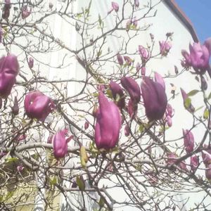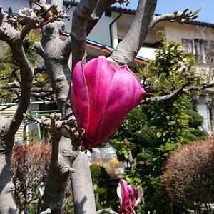 モクレンが咲きました。あと黄色のモクレンもあります。今年は花の数が多いとおじいちゃんが言ってました(๑・̑◡・̑๑)