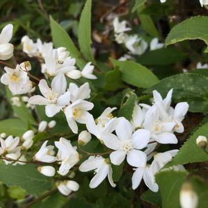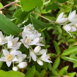 大好きなヒメウツギ♡ 挿木から育てて5年ほどになります。 丸っこい蕾の時も可愛いし、 小さな白い花も可愛い。 満開で密集して咲いてる姿♡