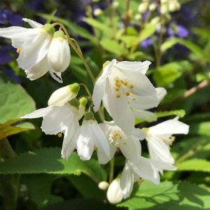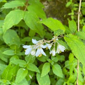 ✳️🌿ヒメウツギの花真っ盛り✳️🌿🎵⛅️ 冬の間は落葉してて大丈夫かなーと思う感じですが 純白のベル型の花が風に揺れると可愛くて目を引きます🎶