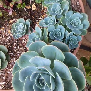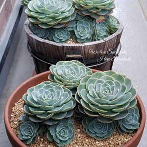 我が家の七福神。 みんなお一人様管理しているけど、雨にあたって大きく成長しました。 お子様が出てきている子もいます😊 もっと大きな鉢にして方がいいのかな。