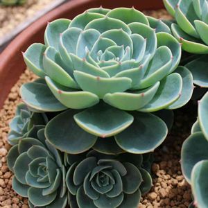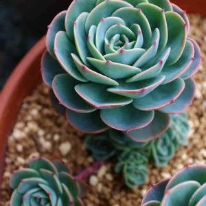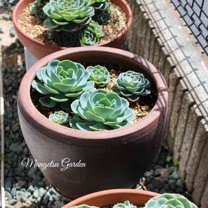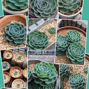 おはようございます。 ①12月中旬 カット苗でした。 ②冬の間、 どんどん小さくなって、 ほとんど変化なし。 ひっぱったらすぐ抜ける。 ③3月上旬 根がしっかりと土を掴んで、ふっくらしてきました。 まだ顔色は白っぼいです。 ④今です。 中心から緑色に変わりました。 こうなったらひと安心です。 ①から④まで、 約4ヶ月かかりました。 七福神が難しいとよく言われるのは、 この時期のことかなと思います。 春に植え替えやカットをすると、 根付くまでに夏が来てしまいます。 七福神の植え替えや、 カットは秋にすると失敗が少ないような気がします。 私も最近この事が分かりました。