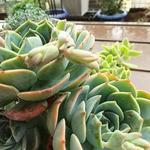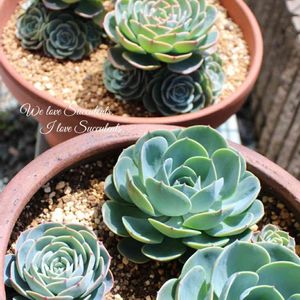 お水をもらってパッカンと元気に開いた七福神達。 ネットでお迎えしたときにおまけでもらった小さなカット苗の2つも調子よく大きくなってます(*´ω`*) あー、やっぱりかわいい♥ 子株たくさん出てほしいなあ。