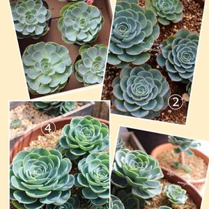 おはようございます。 今日は七福神の移り変わりを載せさせてもらいますー。 左上から時計回りで、 ①2021年秋にポット苗を植えました。 ②年末頃 ③2月頃 ④今現在の姿です。