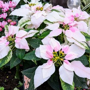 冬を彩る 淡いピンクのポインセチア こんな色合いも素敵🩷✨ エリカ ホワイトデライトは寄せ植えにも人気ですね🤍✨