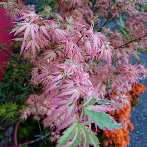 瑞々しい新芽が出てきたなぁ〜と思っていたら、花が咲いてきました‼️ 可愛い赤い色の花♪ 斑入りもみじ🍁です😍✨