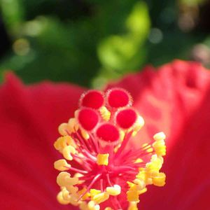 師走並みの寒さになりました。写真だけでも暖かくなりたいと思ったので、今朝はハイビスカスです。五つに割れたパフのような雌しべと、それを取り囲む、黄色の雄しべが朝日に輝いていました。 2017/10/10 神奈川県にて撮影。 Hibiscus rosa-sinensis