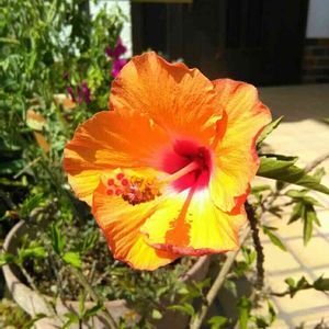ローゼルが咲き出しました😆 去年苗で買って、その種を蒔いたやつ。