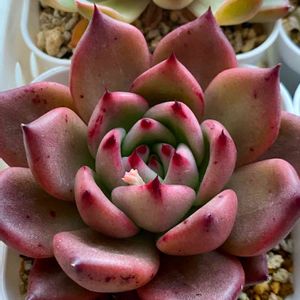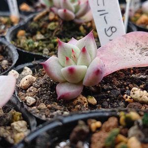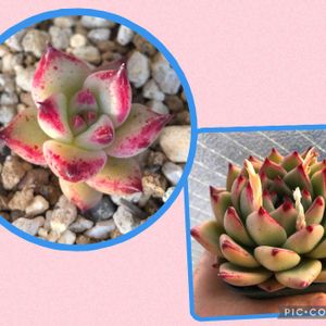 ハニーピンク。 葉挿しの子が、ちっちゃいのに色もクッキリで可愛い😍💕 右下が親株です😊