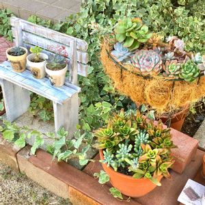 手前の鉢2つに植えていた、ちまちま寄せが暴れ寄せになってしまったのでバラして植え直し。 去年色々買ったエケさん達を寄せ植えに使うのが勿体なくなって使えない😅