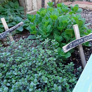 お庭のハーブゾーンです🌿🌿🌿 急にツヤツヤ❇️ もりもりしてきました~🎶 こちらは、 🍀スペアミントとレモンタイム🍀 😊😊😊✌️✌️