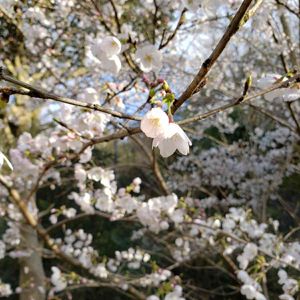 ゆきやなぎさん…ぽかぽか陽気に誘われて… ほんの少し咲いています🤗💞 私も良くやるフライング😣 先に咲いた方が目につくからそれも良きかな🎶