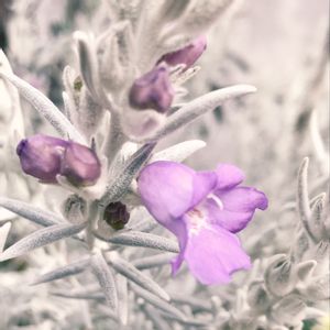 ✩エレモフィラニベア✩ 銀白色の葉と薄紫色の色合いが美しく魅力的なお花… お花が咲き終わっても 白くて細い葉が爽やかな感じなので カラーリーフとしても楽しめます(´˘`๑)"♡ 2年目、今年も咲いてきました〜♪