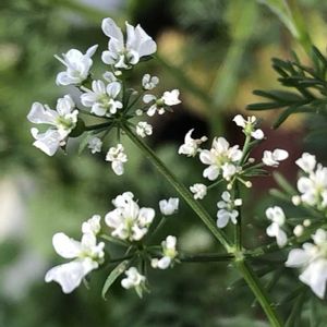コリアンダーの花 すごくすごく小さいけれど 真っ白でキリッとしていて さすがスパイスの花って感じがします
