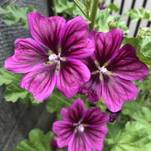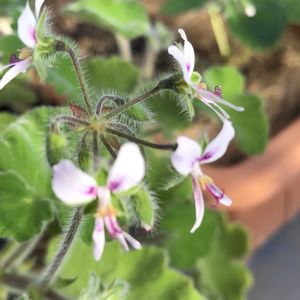 ペパーミントゼラニウム ペパーミントの香りのもふもふの葉っぱは這性でどんどん広がるので 昨秋に強剪定しました 樹形はコンパクトになりましたが お花は増えたような気がします