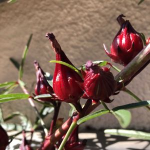 ローゼルの実 今年もたくさん収穫できそうです クエン酸やポリフェノールなどの成分が含まれる 赤くて酸っぱいハーブティーは 疲労回復や代謝向上などの効能が期待されるそう クレオパトラも愛飲していたとかいないとか 単純な私は この植物の花や実の美しさを見ただけで充分幸せな気持ちになって満ち足りてますけどね